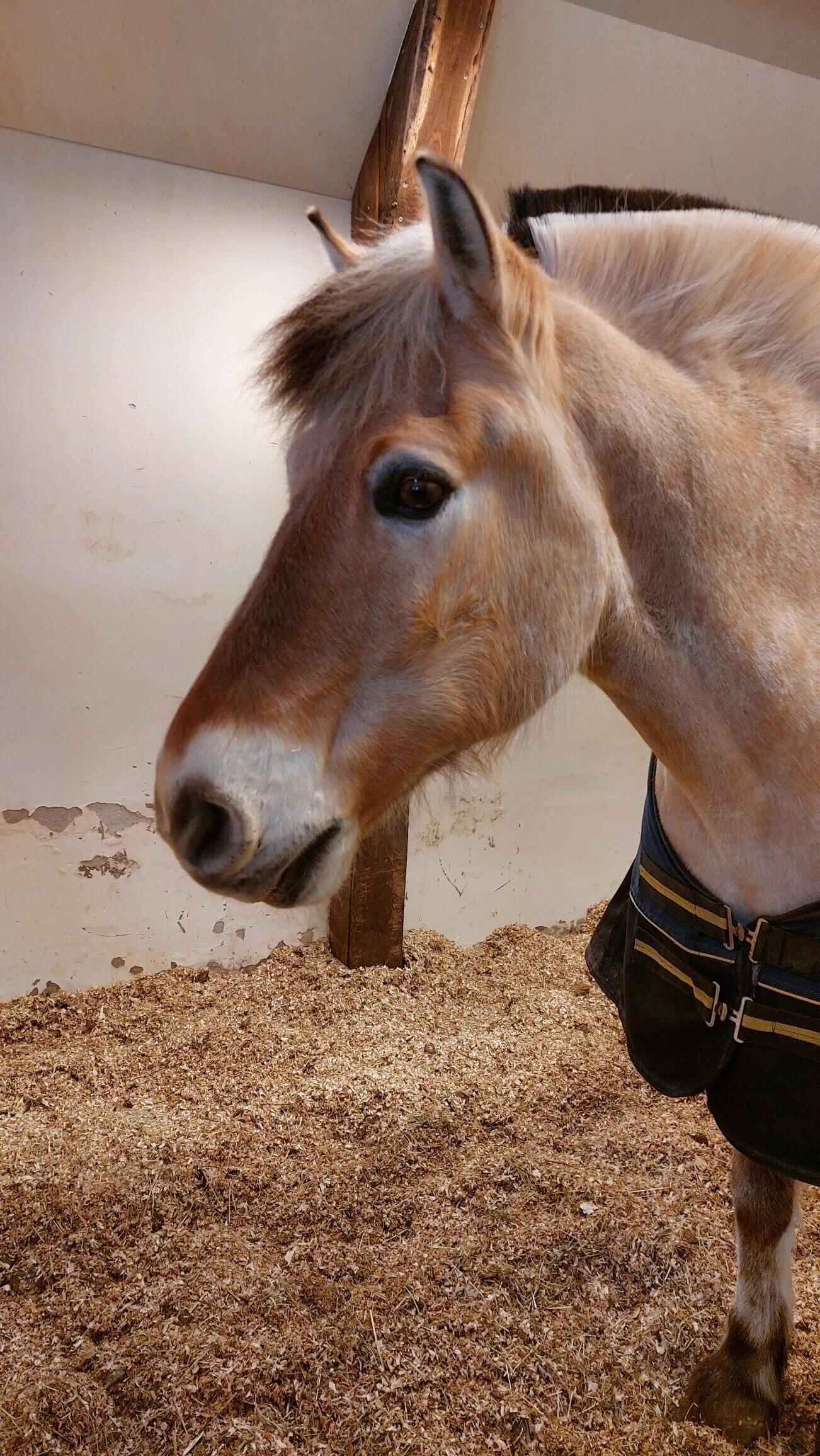 Vanmorgen zagen we onze Piet  in het paardenrolhok stappen en hij wist zelf niet waar hij naartoe zou gaan. Vast niet naar een wedstrijd of zo. Toen hij pas veel later in de middag weer terug kwam vertelde hij, , dat hij wel anderhalf uur in het rolhok gereden had. En toen hij uit mocht stappen bleek hij bij het huis van onze paardentandartsmensen te zijn aangekomen. Normaal komen zij altijd hier, Maar ze waren van plan om iets met zijn gebit te doen, waar ze thuis betere apparatuur voor hadden dan in hun rijdende behandelrolhok. En zo is het gebeurd, dat Pietje daar is verlost van twee voortanden, die zo rot waren geworden, dat hij er meer last dan gemak van had. Best even wennen zei Piet, maar achteraf beken is hij er toch best blij mee. Beter geen tanden dan rotte tanden. En tot verbazing van de mensen begon hij meteen hooi op te  pakken met zijn lippen en dat naar zijn , nog goede kiezen , te schuiven. Eigenlijk ook wel logisch . Het zou  wel gek zijn als hij niet op de een of andere manier erin zou slagen om lekker eten naar binnen te krijgen. Hij is dan wel stokoud , maar nog altijd een echte fjord bij wie het naar binnen werken van eten op plaats 1, plaats 2 en plaats 3 staat.